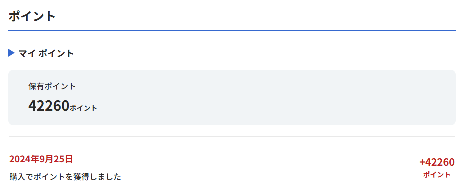 過去に獲得、使用したポイントの履歴を参照することが可能です。