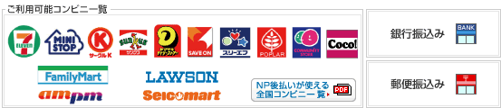 後払い決済(コンビニ払い / 銀行振込 / 郵便振替)