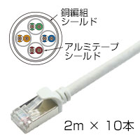 Cat6A対応シールドLANケーブル 10本入 HLC-T6AS-2MP-10