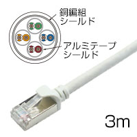 Cat6A対応シールドLANケーブル 3m HLC-T6AS-3MP